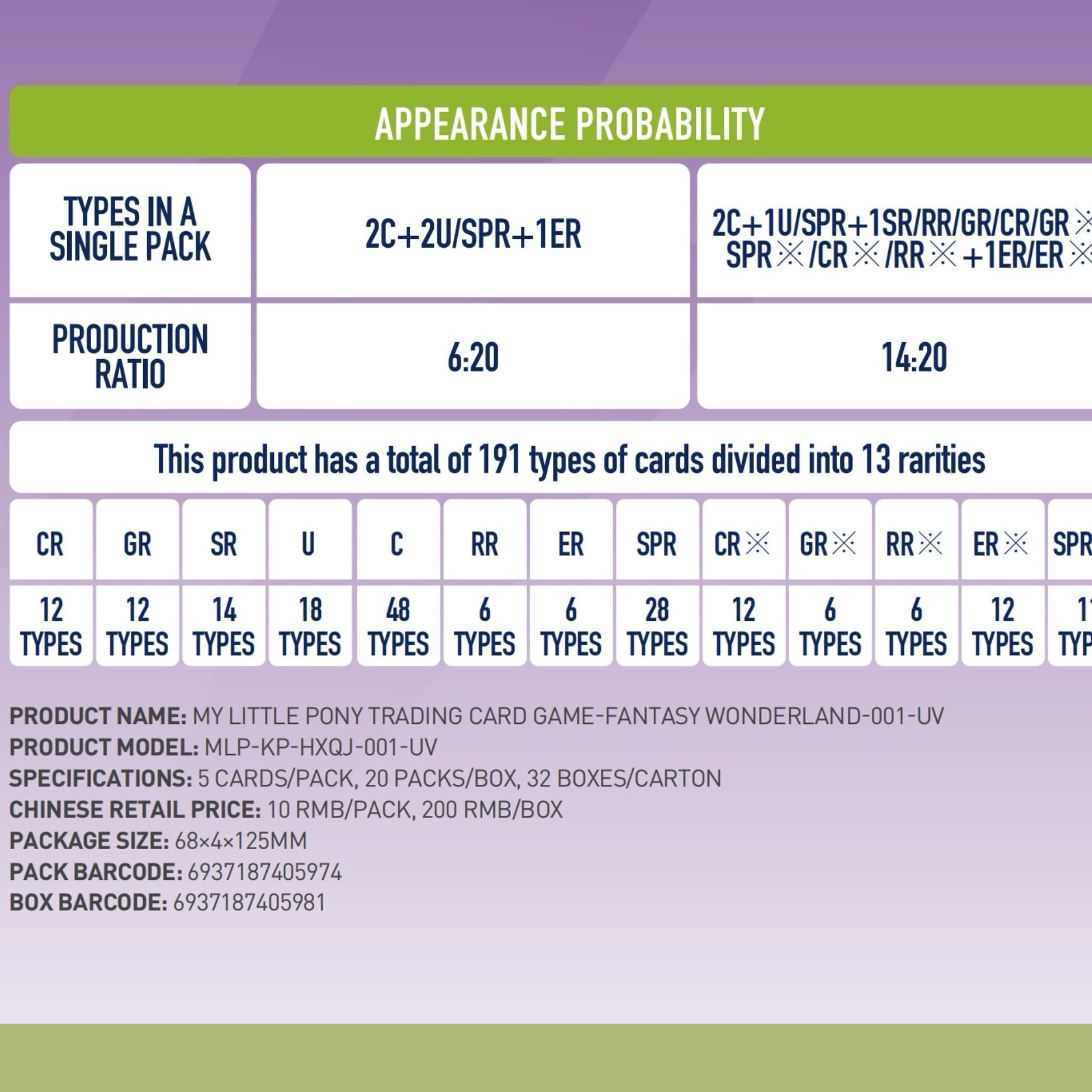 Official KAYOU My Little Pony Fantasy Wonderland TCG booster pack 001 UV. English edition trading card game featuring your favorite ponies. Collectible and playable cards for MLP TCG players